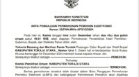 Ombas-Marthen Resmi Ajukan Gugatan Hasil Pilkada Toraja Utara ke MK